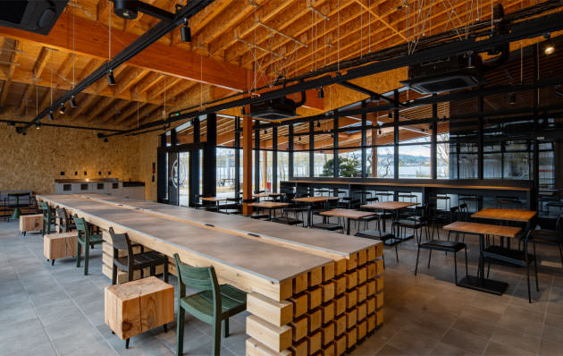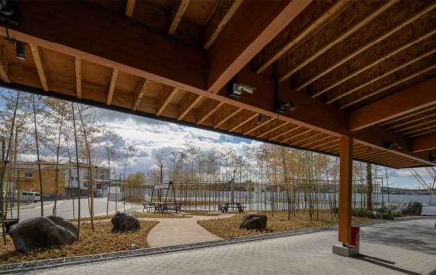 木造で設計した「ロジスクエア京田辺」共用棟竣工写真。